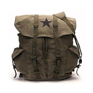 Rothco Vintage Star Backpack is a stylish bag for traveling or school. Is made of canvas for durability and has two adjustable shoulder straps for comfort. Makes a great gift! Specifications: 18" X 15", adjustable shoulder straps, 2 side pockets with flaps